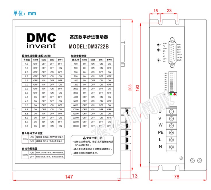 DP9=ON, PU為正相步進脈沖信號 | ||||