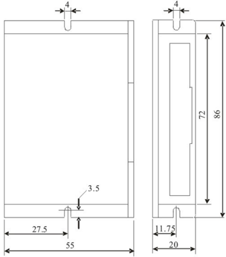 DIR- | 方向控制信號:為保證電機可靠換向,方向信號應先于脈沖信號至少 5μs 建立。電機的初始運行方向與電機的接線有關,互換任一相繞組 (如A+、A-交換)可以改變電機初始運行的方向,DIR-高電平時4~5V,低電平時0~0.5V。如采用+12V 或+24V 時需串電阻。 |