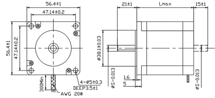 57mm三相步進(jìn)電機(jī)外形尺寸圖: